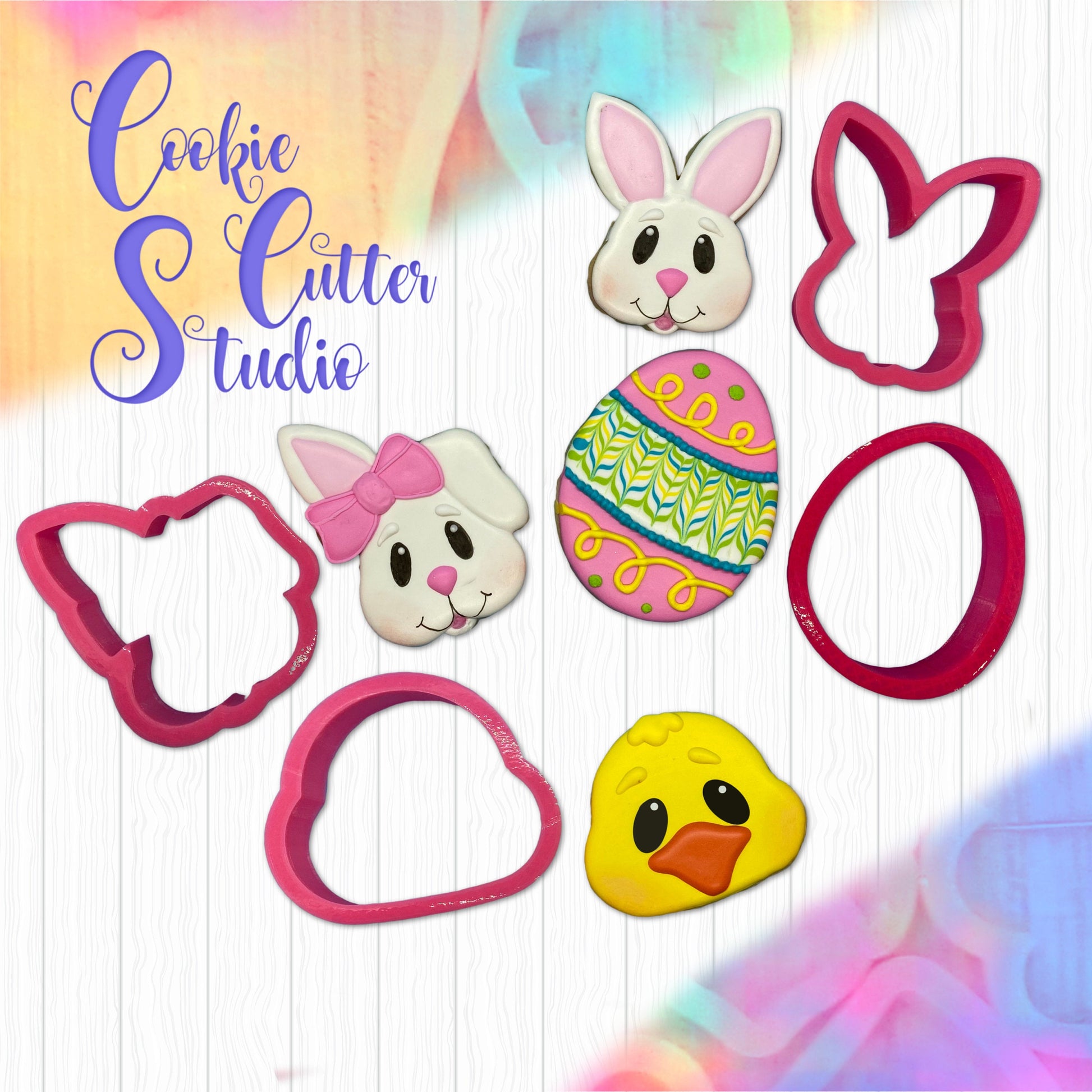 Create Easter cookies with this set including Boy Bunny, Girl Bunny, Chick and Egg Cutters!